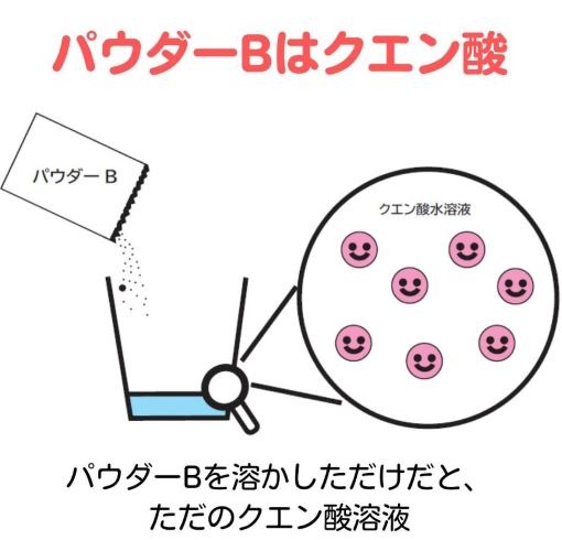 ・パウダーA(ピンクまたは水色のこな) ⇒重曹(炭酸水素ナトリウム)